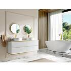 Vente Unique Meuble de salle de bain suspendu strié liseré doré avec double vasque à poser ronde Blanc 150 cm KELIZA