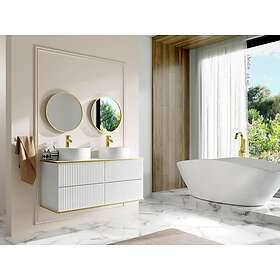 Le meilleur prix pour Vente Unique Meuble de salle de bain suspendu strié liseré doré avec double vasque à poser ronde Blanc 120 cm KELIZA est actuellement de 479,99 €. Il fait partie des 100 produits le plus populaires dans notre catégorie Armoires de salle de bain. leDénicheur compare les promos et les offres de 3 marchands en ligne.