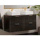 Vente Unique Meuble de salle de bain suspendu strié avec vasque à poser Noir L120 cm ZEVARA