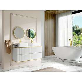 Vente Unique Meuble de salle de bain suspendu strié liseré doré avec double vasque à poser carrée Blanc 120 cm KELIZA