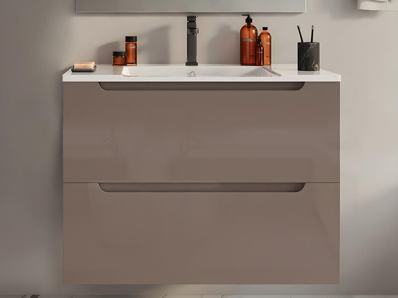 Vente Unique Meuble simple vasque suspendu Taupe 80 cm STEFANIE