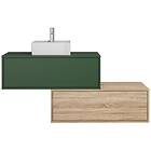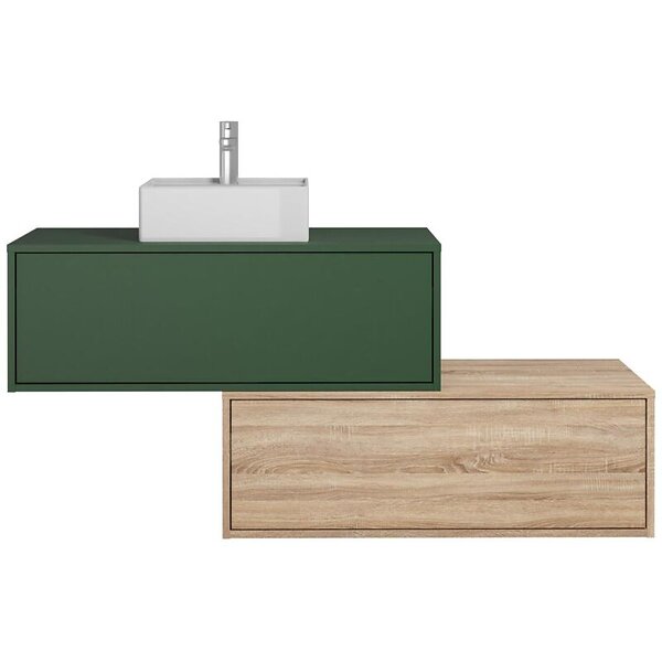 Vente Unique Meuble de salle de bain suspendu vert et naturel clair avec simple vasque carrée et deux tiroirs 94 cm TEANA II