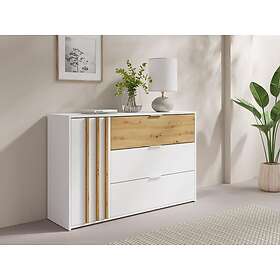 Vente Unique Commode 3 tiroirs et 1 porte Coloris : Naturel et blanc TUNALO