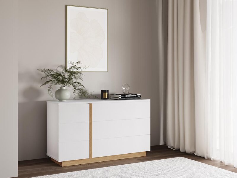 Vente Unique Commode 6 tiroirs Blanc et naturel NAPOLI II