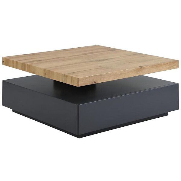 Vente Unique Table basse pivotante avec 1 tiroir en MDF Anthracite et naturel KYRIA