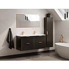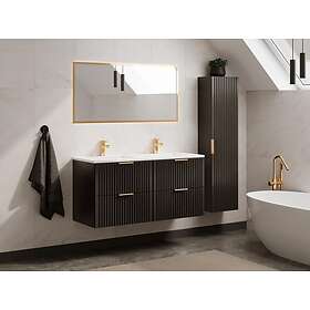 Vente Unique Meuble de salle de bain suspendu strié avec vasque à encastrer et colonne Noir 120 cm ZEVARA