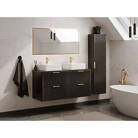 Vente Unique Meuble de salle de bain suspendu strié avec vasque à poser et colonne Noir 120 cm ZEVARA