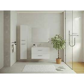 Vente Unique Meuble de salle de bain suspendu simple vasque avec colonne de rangement Coloris blanc 80 cm KAYLA
