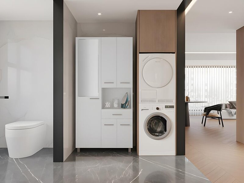 Vente Unique Colonne de salle de bain avec miroir sur pied 180 cm Blanc MINELA