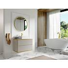 Vente Unique Meuble sous vasque suspendu strié liseré doré Beige L80 cm KELIZA