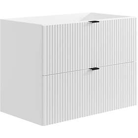 Vente Unique Meuble sous vasque suspendu strié Blanc mat 80 cm ZEVINI