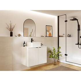 Vente Unique Meuble sous vasque suspendu strié avec planche Blanc 80 cm PARMIZA