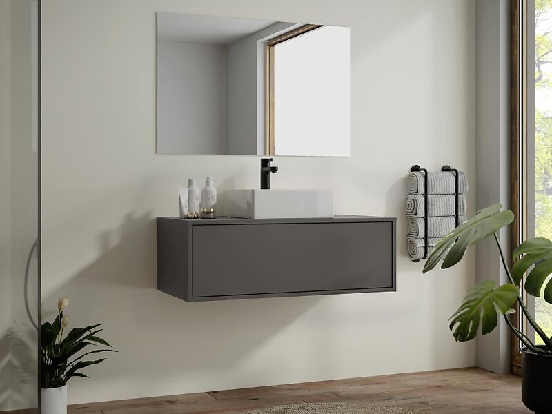Vente Unique Meuble sous vasque suspendu Coloris gris anthracite 94 cm TEANA II