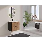 Vente Unique Meuble sous vasque suspendu strié Naturel clair et noir 60 cm MADELA