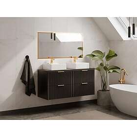 Vente Unique Meuble sous vasque suspendu strié Noir L120 cm ZEVARA