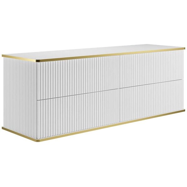 Vente Unique Meuble sous vasque suspendu strié liseré doré Blanc 150 cm KELIZA