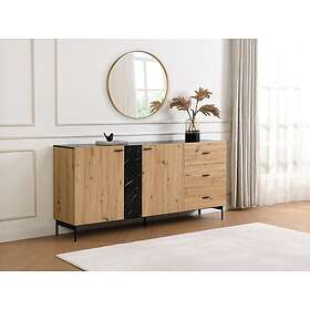 Vente Unique Buffet avec 2 portes et 3 tiroir en MDF et métal Naturel clair et Effet marbre noir LIOMENA de Pascal Morabito