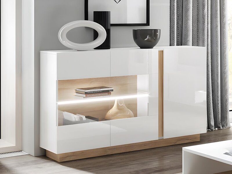 Vente Unique Buffet MURARI 3 portes Avec LEDs Blanc brillant et chêne