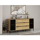 Vente Unique Buffet avec 2 portes en verre trempé et 6 tiroirs Naturel et noir MOLINIA