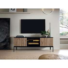 Vente Unique Meuble TV 3 portes avec LEDs en MDF et verre fumé Noir et Naturel OVILA
