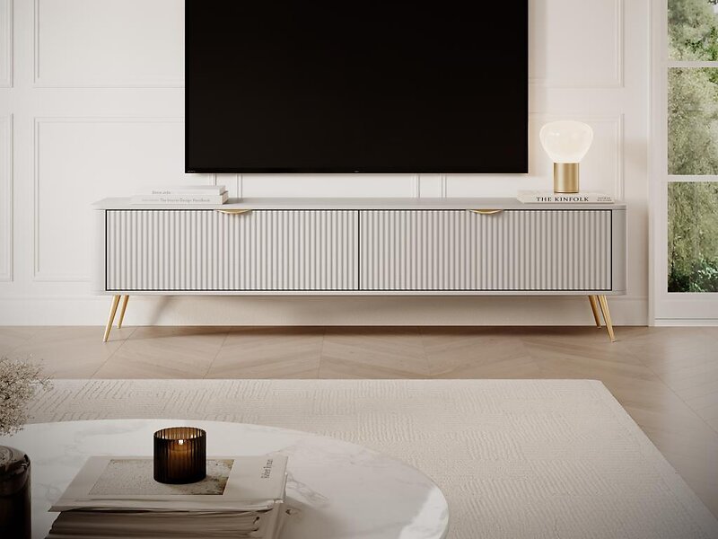Vente Unique Meuble TV avec 2 portes en MDF Beige et doré ELONARIA de Pascal Morabito