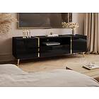 Vente Unique Meuble TV avec 2 portes, 1 tiroir et 1 niche Noir brillant et Doré MARZIALO