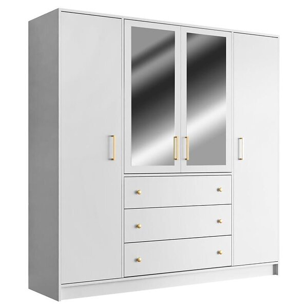 Vente Unique Armoire 4 portes et 3 tiroirs Avec miroirs L196 cm Blanc LIZANDRO
