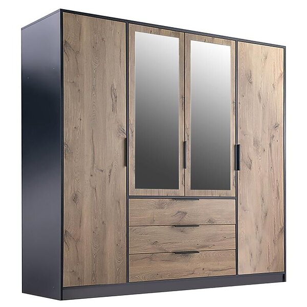Vente Unique Armoire 4 portes et 3 tiroirs Avec miroirs L196 cm Coloris : Naturel et noir LAMIKI