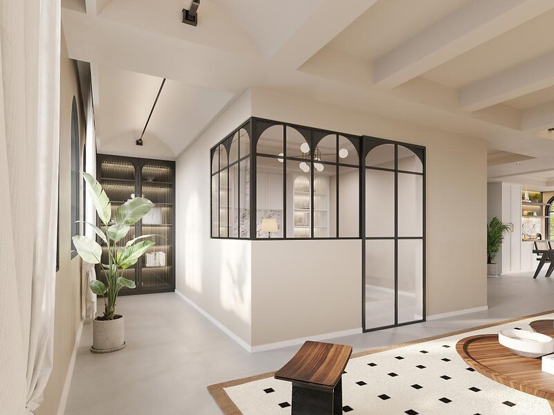 Vente Unique Verrière d'angle d'atelier art déco en aluminium thermolaqué L120 x L120 x H105 Noir ARCADEA