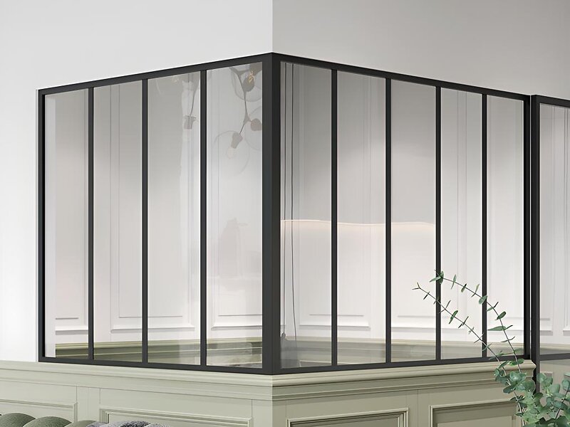 Vente Unique Verrière d'angle d'atelier en aluminium thermolaqué L150 x L120 x H105 Noir BAYVIEW