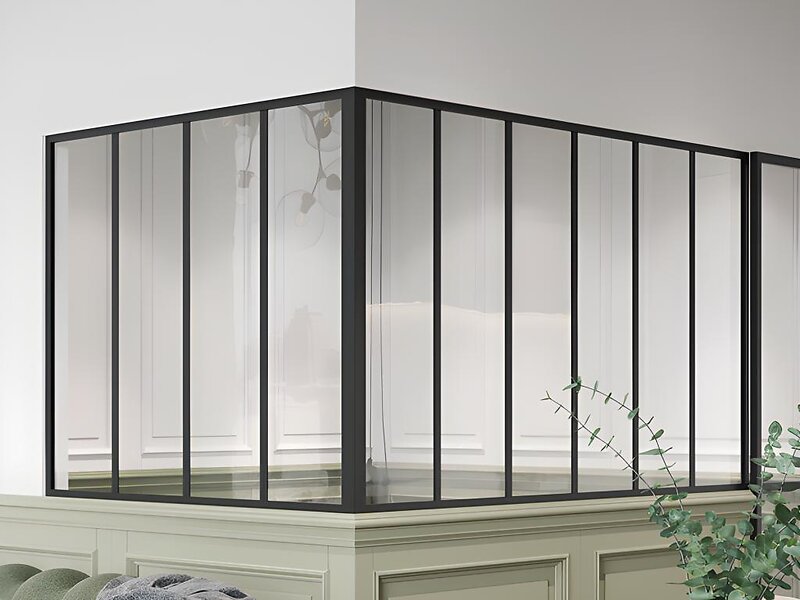 Vente Unique Verrière d'angle d'atelier en aluminium thermolaqué L180 x L120 x H105 Noir BAYVIEW