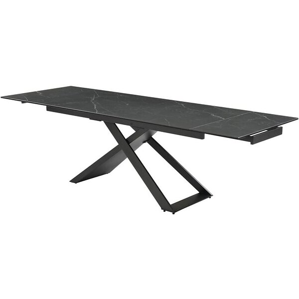 Vente Unique Table à manger extensible 6 à 10 personnes en céramique, verre trempé et métal Effet marbre noir XERENA de Maison Céphy