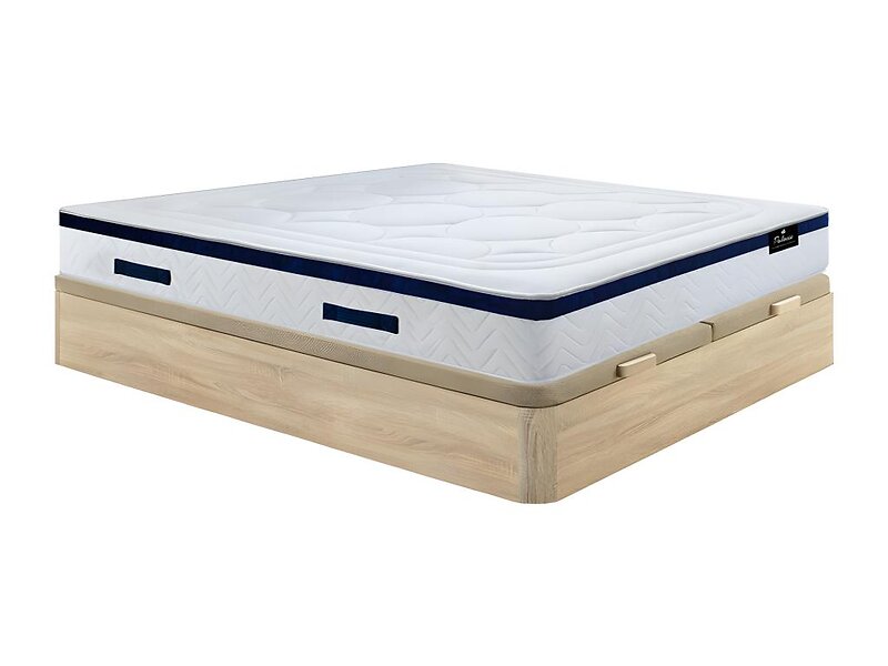 Palacio Ensemble 180 x 200 cm sommier coffre naturel clair matelas hybride ressorts ensachés ép.30cm MARQUIS de