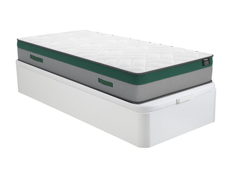 YSMÉE Ensemble 90 x 190 cm sommier coffre blanc matelas ressorts ensachés ép.22cm PRESTIGE de