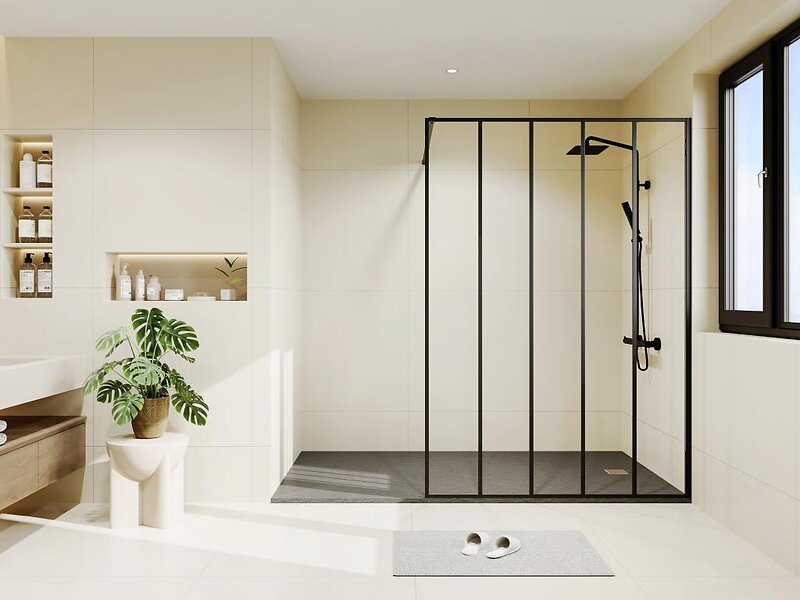 Vente Unique Paroi de douche à l'italienne style industriel Noir mat 140 x 200 cm ATALIA II