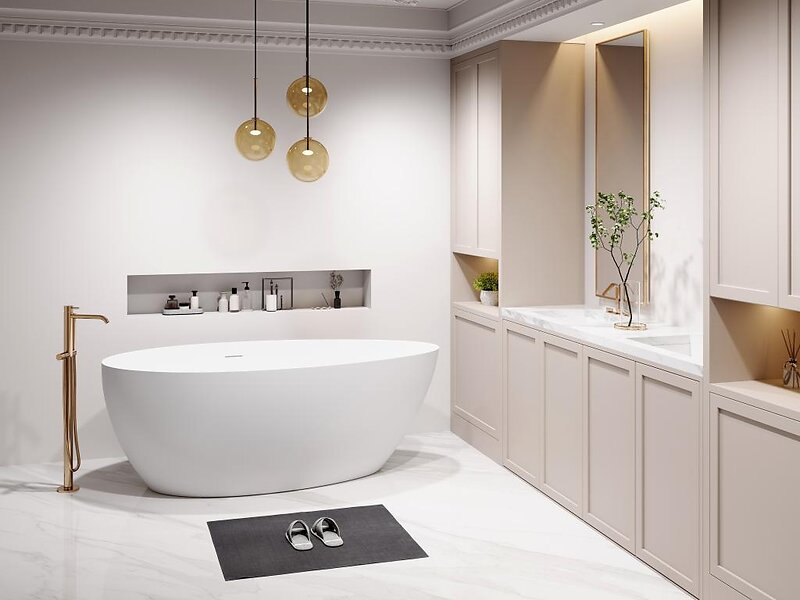 Vente Unique Baignoire îlot asymétrique 245l 160 x 82 x 58 cm Blanc mat Acrylique APULIA