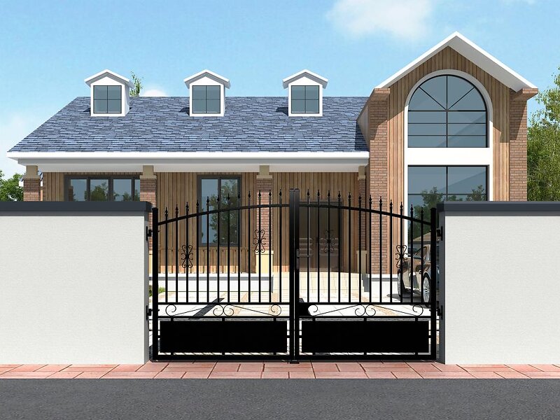 Vente Unique Portail battant aluminium ajouré L367 x H183 cm noir NERBIS