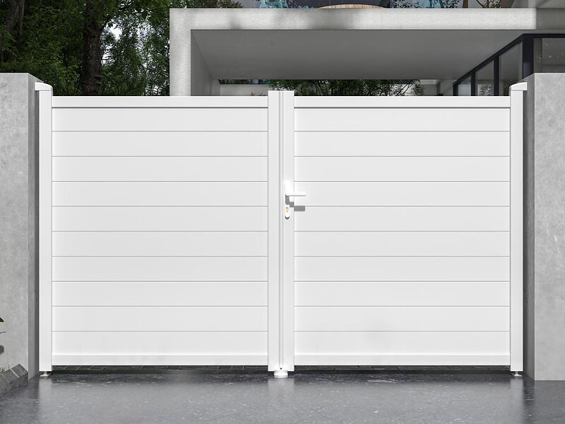 Vente Unique Portail battant aluminium plein L305 x H181 cm blanc NAZARIO