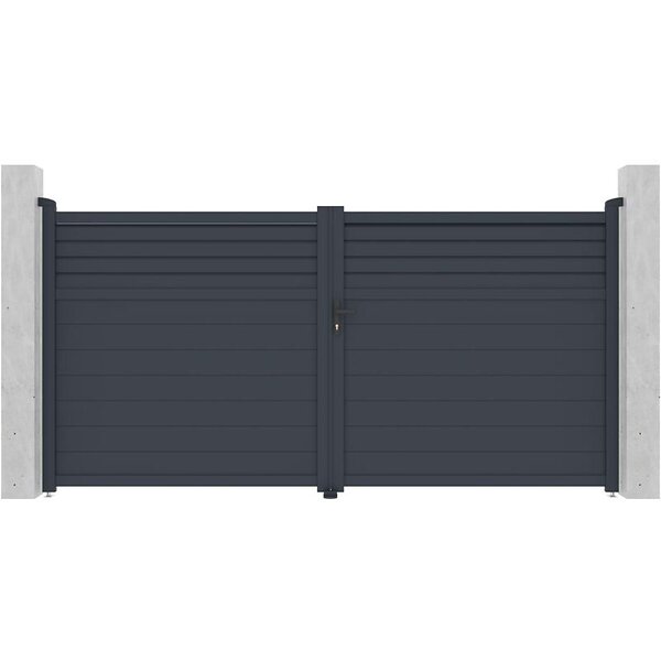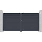 Vente Unique Portail battant aluminium persienné L355 x H181 cm anthracite VIAZO