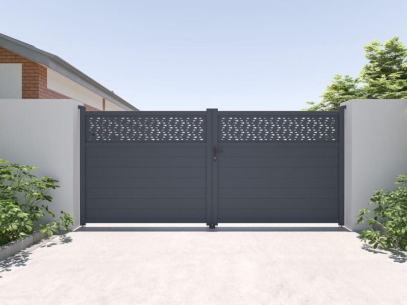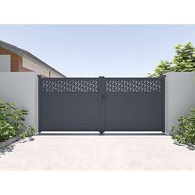 Vente Unique Portail battant aluminium semi plein à motifs L397 x H181 cm anthracite BAZIO