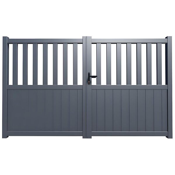 Vente Unique Portail battant aluminium semi plein L321 x H148 cm anthracite TARNOS II