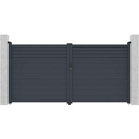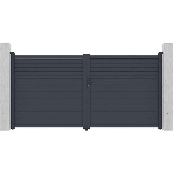 Vente Unique Portail électrique battant aluminium persienné L355 x H181 cm anthracite VIAZO