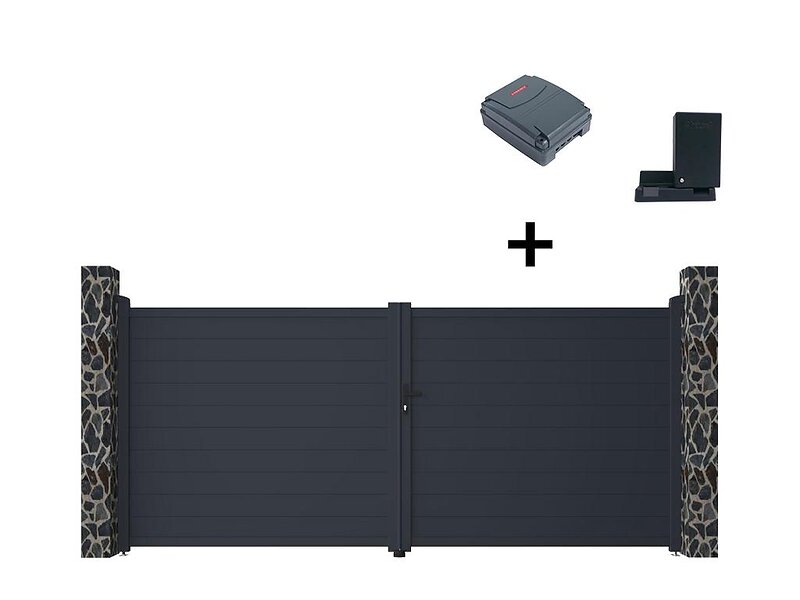Vente Unique Portail électrique battant aluminium plein L397 x H181 cm anthracite NAZARIO