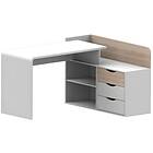 Vente Unique Bureau d'angle DECLAN II MDF 3 tiroirs & 2 niches Coloris : Blanc & Chêne