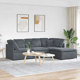 vidaXL Modulsoffa med fotpall och dynor sammet mörkgrå 3321310