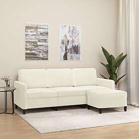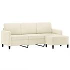 vidaXL 3-sitssoffa med fotpall gräddvit 180 cm sammet 3201182