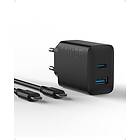 Anker USB-C-laddare 2 portar 1xUSB-C 1xUSB-A 20W Snabbladdning med 150 cm USB-kabel