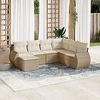 vidaXL Matgrupp för trädgården med dynor 7 delar beige konstrotting 3221697