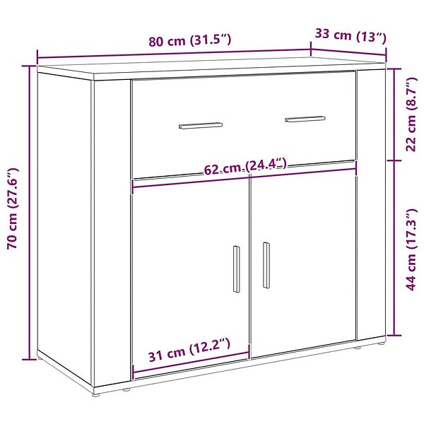 vidaXL Sideboard Svart ek Konstruerat trä Medium Buffet Rektangulär