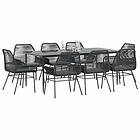 vidaXL Matgrupp för trädgård med dynor 9 delar svart polyrotting glas
